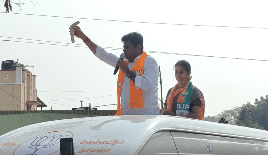 நகர்ப்புற உள்ளாட்சி தேர்தலுக்கான பிரச்சாரத்தின் கடைசி நாளான இன்று பல்வேறு கட்சிகள் தீவிர வாக்கு சேகரிப்பில் ஈடுபட்டுள்ளனர். அதன் ஒரு பகுதியாக கோவை துடியலூர் பகுதி வெள்ளகிணரில் இரண்டாவது வார்டு பாஜக வேட்பாளர் வத்சலா வை ஆதரித்து பாஜக மாநிலத் தலைவர் அண்ணாமலை பிரச்சாரம் மேற்கொண்டார்.