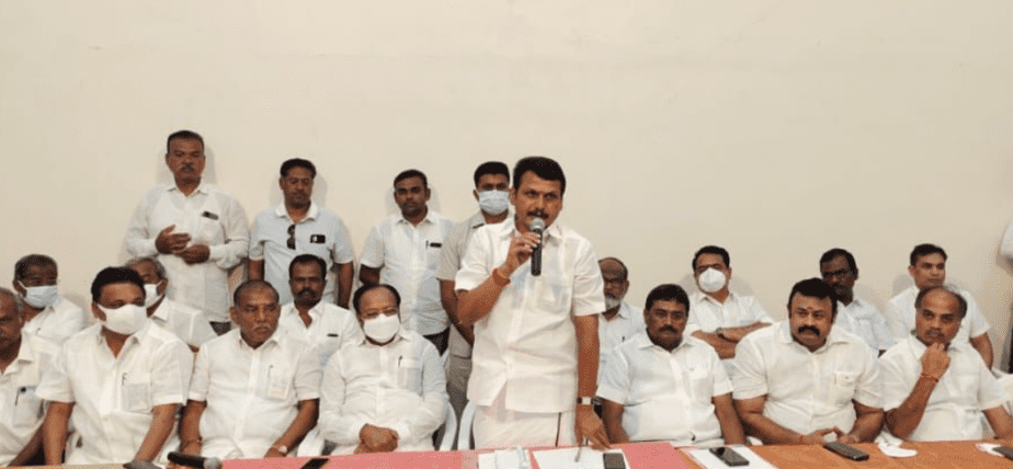 செல்போன்களை வெளியில் வைத்துவிட்டு வரச்சொல்லி இருக்கின்றனர். கூட்டம் நடந்த மண்டபத்தின் கதவுகளை அடைத்து விட்டு பக்கத்தில் கட்சிக்காரர்கள்தான் இருக்கின்றார்களா? என பார்த்துக்கொண்டு பேசி இருக்கின்றனர்.