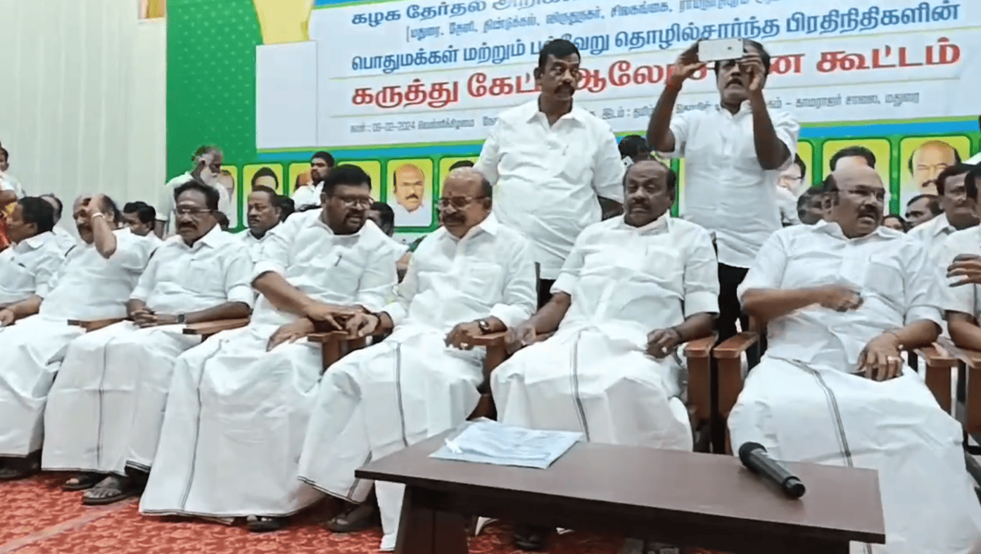 அதிமுகவின் தேர்தல் அறிக்கை தயாரிப்பதற்கான கருத்து கருப்பு கூட்டம் மதுரையிலுள்ள தனியார் மண்டபத்தில் நடைபெற்றது. முன்னாள் அமைச்சர் நத்தம் விஸ்வநாதன் தலைமையில் திண்டுக்கல் சீனிவாசன், ஜெயக்குமார், பொள்ளாச்சி ஜெயராமன், வளர்மதி, செம்மலை, ஆர்.பி. உதயகுமார், செல்லூர் ராஜூ உள்ளிட்டோர் அடங்கிய குழுவினர் மதுரை, தேனி, திண்டுக்கல், விருதுநகர், சிவகங்கை, ராமநாதபுரம் மாவட்டங்களை சேர்ந்த பல்வேறு அமைப்பினரிடம் கோரிக்கை மனுக்களை பெற்றனர்.