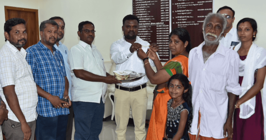 அப்போது, அத்துடன் அணிந்திருந்த சுமார் 1 3/4 பவுன் தங்கச் செயினையும் சேர்த்து தவறுதலாக உண்டியலில் செலுத்தி விட்டார். இது குறித்து கேரள பக்தரான சங்கீதா கோவில் நிர்வாகத்திடம் தாங்கள் ஏழ்மை குடும்பத்தை சேர்ந்தவர் என்றும், தங்கள் குடும்பத்தின் ஏழ்மை சூழ்நிலை கருத்தில் கொண்டு தவறுதலாக உண்டியல் செலுத்தப்பட்ட தங்க செயினை திரும்ப வழங்குமாறு கடிதம் கொடுத்திருந்தார்.