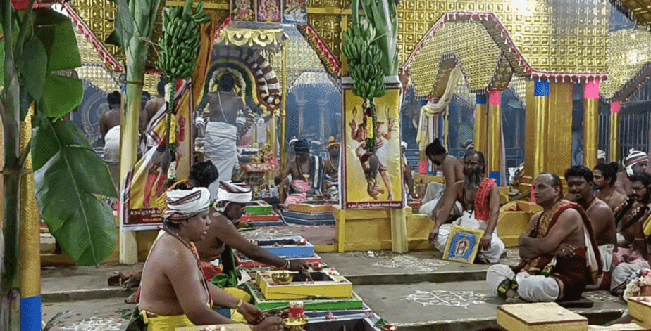 தொடர்ந்து வரும் 27ம்தேதி அதிகாலை வரை எட்டு கால வேள்வி பூஜைகள் துவங்கி நிறைவுறுகிறது. 26ம்தேதி மலைக்கோவில் மூலவர் ராஜகோபுரம் தங்க விமானம் தவிர மற்ற அனைத்து பகுதிகளிலும் உள்ள திருக்கோவிலுக்கு 26ம் தேதி கும்பாபிஷேகம் நடத்தப்படுகிறது. இதையடுத்து 27ம் தேதி காலை 8 மணி முதல் 9.30 மணிக்குள் ராஜகோபுரம், தங்க விமானம் ஆகியவற்றிற்கு தீர்த்தம் அபிசேகம் நடத்தப்பட்டு, தொடர்ந்து மூலவருக்கு கும்பாபிஷேக விழா நடைபெறுகிறது.