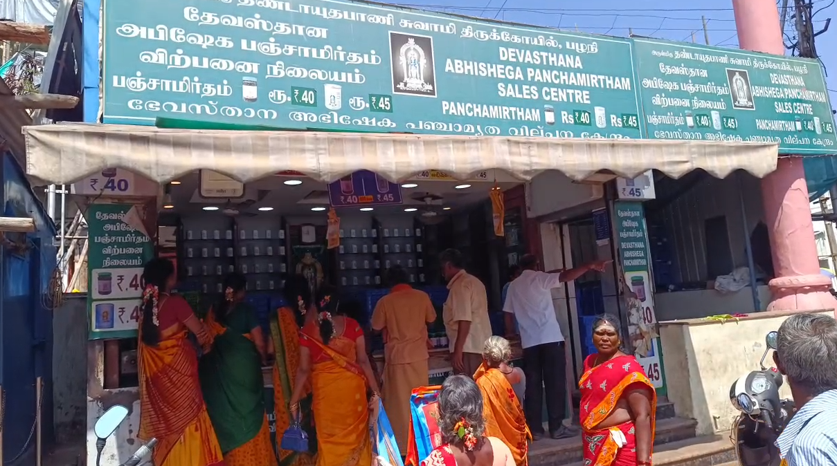 அறுபடை வீடுகளில் மூன்றாம் படை வீடான பழனி தண்டாயுதபாணி சுவாமி கோவிலில் நாள்தோறும் ஆயிரக்கணக்கான பக்தர்களும் திருவிழா மற்றும் விசேஷ காலம் லட்சக்கணக்கான மக்கள் வருகை தருகின்றனர். அவர்களுக்கு திருக்கோவில் தேவஸ்தான நிர்வாகம் சார்பில் பஞ்சாமிர்தம், லட்டு, அதிரசம்,முறுக்கு உள்ளிட்டவை தயாரிக்கப்பட்டு திருக்கோவில் ஊழியர்கள் வைத்து ஆங்காங்கே கடைகள் அமைக்கப்பட்டு விற்பனை செய்யப்பட்டு வருகிறது.