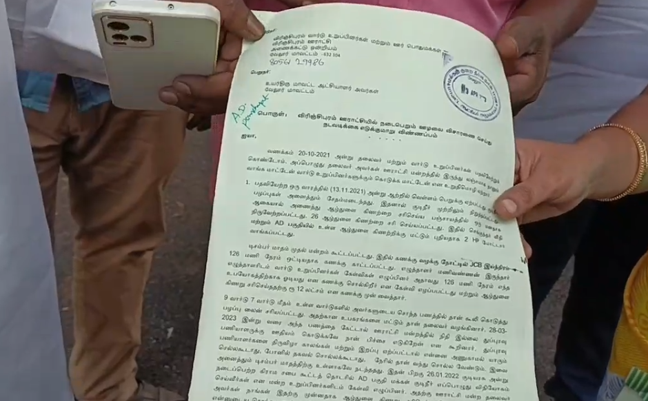 மேலும் ஆயிரம் ரூபாய்க்கு பணி செய்தாலும் அதன் மீது பத்தாயிரம் முதல் 20 ஆயிரம் ரூபாய் வரை பணி செய்ததாக கூறி அதிகப்படியான பணத்தை எடுப்பதாகவும் ஏன் அவ்வாறு செய்கிறீர்கள் என கேட்டால் அதிகாரிகளுக்கு எல்லாம் பணம் தரவேண்டி உள்ளது ஆகவே தான் அதை எடுக்கிறோம் என்று கூறியுள்ளதாக புகாரில் தெரிவித்துள்ளனர்.
