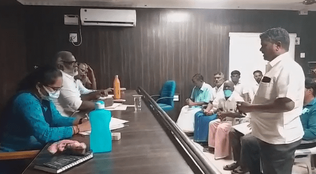 பழவேற்காடு ஏரியில் மீன் பிடிப்பதில் தகராறு : கோட்டாட்சியரின் முன்பு இருதரப்பினரிடையே தள்ளுமுள்ளு..!
