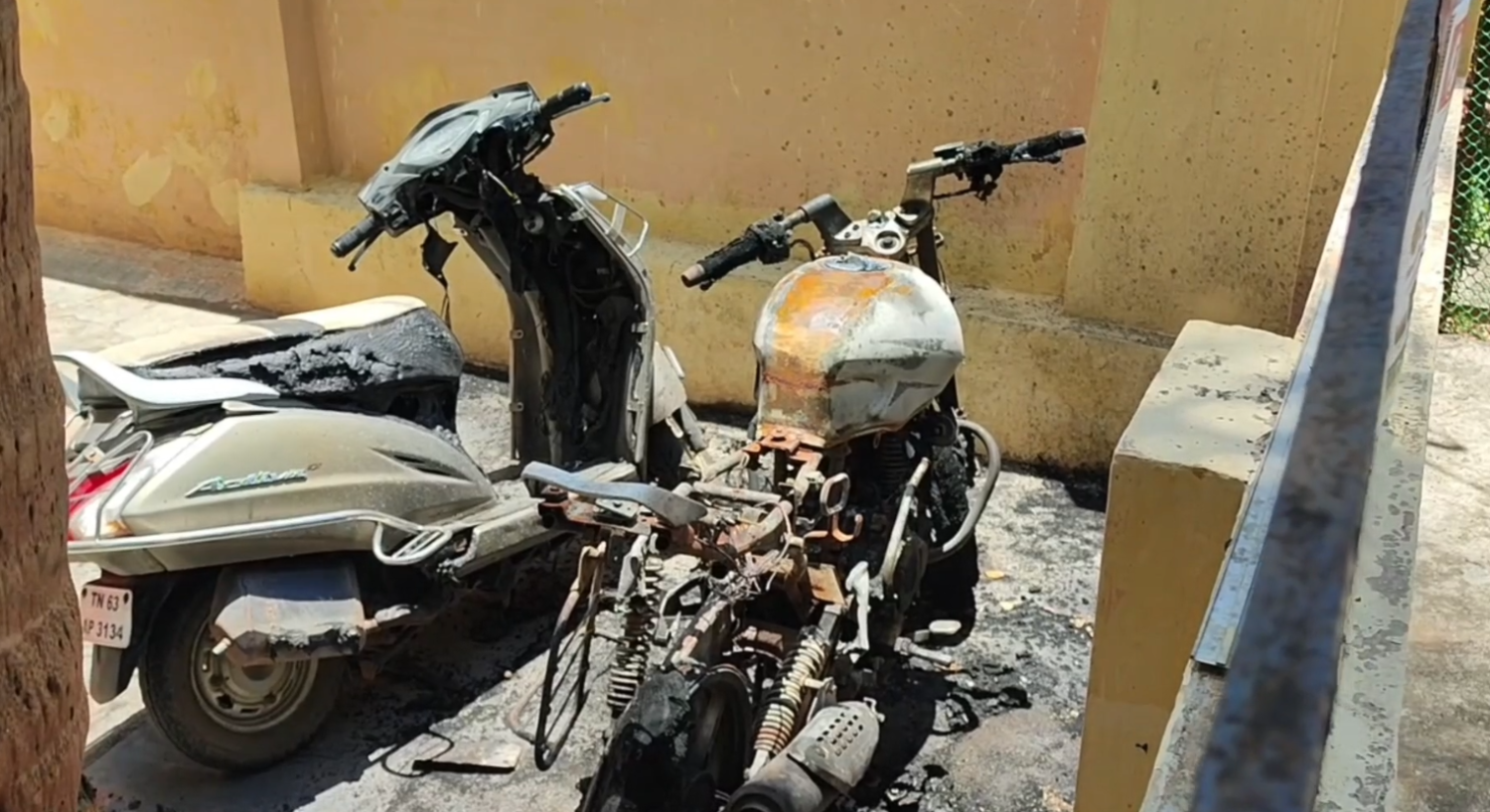 கடந்த 12 ஆம் தேதி இரவு 11.37 மணி அளவில் மர்ம நபர் ஒருவர் காவல் நிலைய வளாகத்திற்குள் உள்ள இருசக்கர வாகனத்தில் தீயை பற்ற வைத்த நிலையில், வாகனம் முழுவதுமாக எரிந்து நாசமாகியது. இதைத் தொடர்ந்து, இரவு 11.41மணி அளவில் அலுவலகத்தை விட்டு வெளியே செல்லக்கூடிய காட்சி கண்காணிப்பு கேமராவில் பதிவாகி இருந்தது.