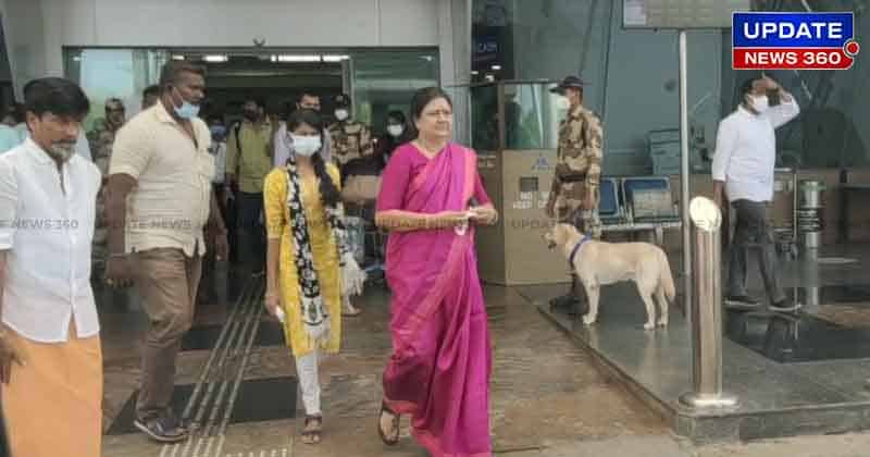 திருக்கடையூர் மற்றும் சிக்கல் சிங்காரவேலர் திருக்கோயில்களில் சாமி தரிசனம் செய்வதற்காக சென்னையில் இருந்து விமானம் மூலம் சசிகலா திருச்சி வந்தடைந்தார்.