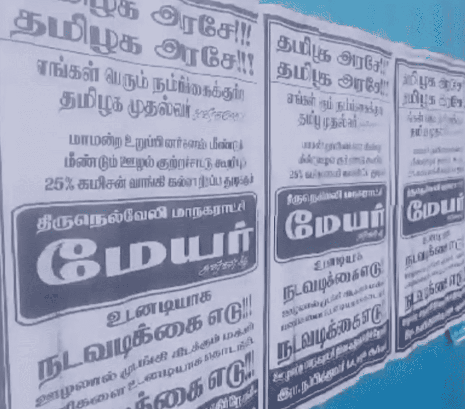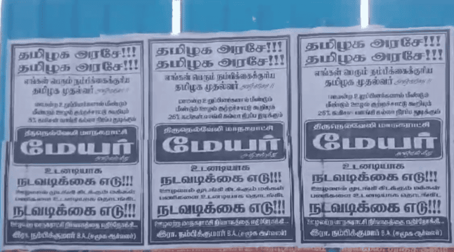 இது போன்ற நிலையில், திருநெல்வேலி மாநகராட்சி மேயர் சரவணனுக்கு எதிராக மாநகரம் முழுவதும் ஒட்டப்பட்டுள்ள போஸ்டர் பரபரப்பு ஏற்படுத்தியுள்ளது.