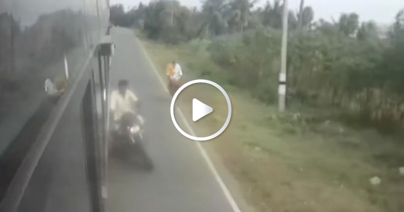 புதுக்கோட்டை அருகே அதிவேகத்தில் சென்ற தனியார் பயணிகள் பேருந்து மோதியதில் இருசக்கர வாகனத்தில் சென்றவர் நிலைதடுமாறி கீழே விழுந்து உயிரிழந்த சி.சி.டிவி காட்சி வெளியாகி அதிர்ச்சியை ஏற்படுத்தியுள்ளது.