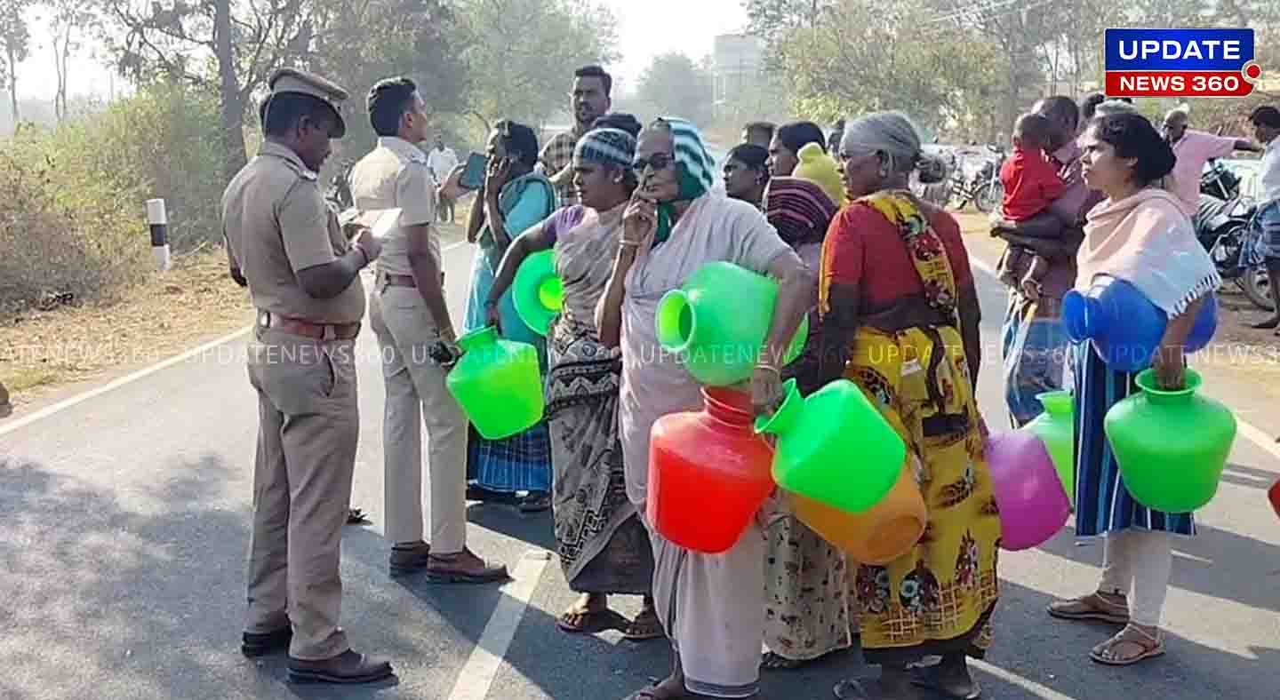 எனவே நியாய விலைக் கடையை செயல்படுத்த நடவடிக்கை எடுக்க வேண்டும் எனக்கு கோரிக்கை வைத்தனர். குடிநீர் வழங்க வேண்டி நடைபெற்ற இந்த சாலை மறியல் காரணமாக சுமார் ஒரு மணி நேரத்திற்கு மேலாக போக்குவரத்து பாதிப்பு ஏற்பட்டது.