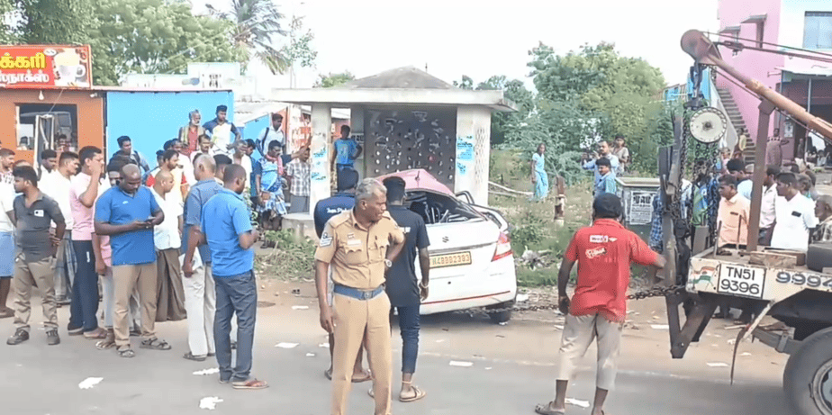 இன்று காலை கார் மதுரை – திருச்சி தேசிய நெடுஞ்சாலையில் லஞ்சமேடு என்ற பகுதிக்கு சென்றபோது, சாலையோரம் நிறுத்தப்பட்டிருந்த மினி சரக்கு வேனில் எதிர்பாராதவிதமாக மோதி உள்ளது. இதில் கார் ஓட்டுநரின் கட்டுப்பாட்டை இழந்து சாலையில் தாறுமாறாக ஓடி அருகில் இருந்த பயணியர் நிழற்குடையில் மோதி விபத்துக்குள்ளானது. இதில் கார் முழுவதும் சேதம் அடைந்தது.