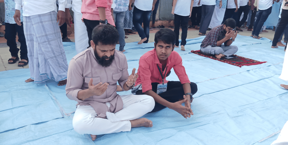 தொழுகை முடிந்து உலக நன்மை வேண்டியும், மழை பொழிய வேண்டியும் உலக அமைதி நிலவ வேண்டும் என்றும் துஆ செய்தனர். இந்த சிறப்பு தொழுகையில் திரைப்பட இயக்குனர் அமீர் கலந்து கொண்டார். தொடர்ந்து, ஒவ்வொருக்கொருவர் வாழ்த்துகள் தெரிவித்துக் கொண்டனர்.