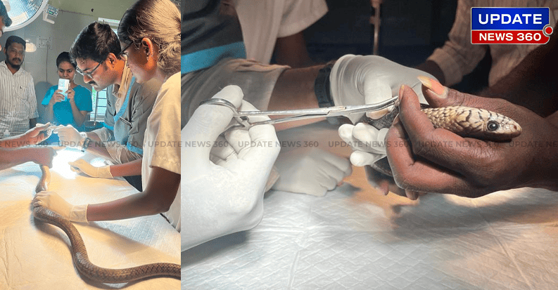 மீன் தூண்டில் முள் குத்தி உயிருக்கு போராடிய சாரைப்பாம்பு : அறுவை சிகிச்சை செய்து காப்பாற்றிய கால்நடை மருத்துவர்கள்!!