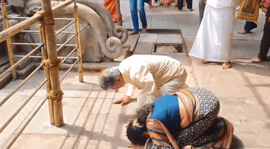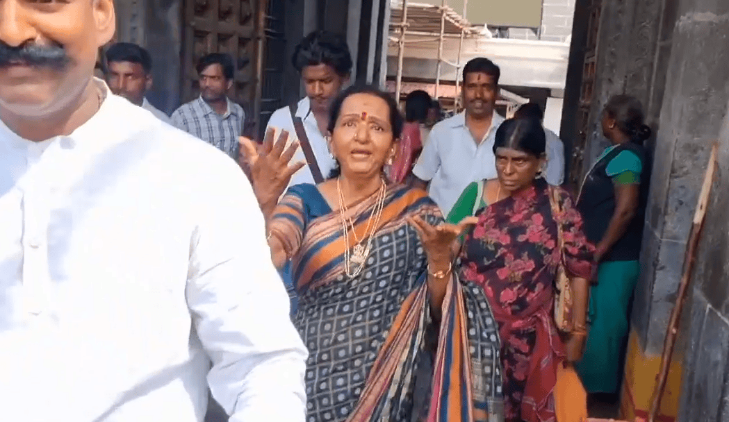 பின்னர் கோவில் கொடிமரம் அருகே தரையில் விழுந்து வணங்கி வழிபட்டனர். பின்னர் திருக்கோவிலில் இருந்து புறப்பட்ட அவர்களை செய்தியாளர்கள் வீடியோ எடுக்க முற்பட்ட போது நீங்கள் வராதீர்கள், வராதீர்கள் என கூறியபடி நடிகர் விஜய் அம்மா தெறித்து ஓடினார்.