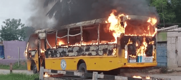 வேலூர் : அரக்கோணம் அருகே சாலையில் ஓடிக்கொண்டிருந்த தனியார் பள்ளிப் பேருந்து திடீரென தீப்பற்றி எரிந்த சம்பவம் பெரும் அதிர்ச்சியை ஏற்படுத்தியுள்ளது.