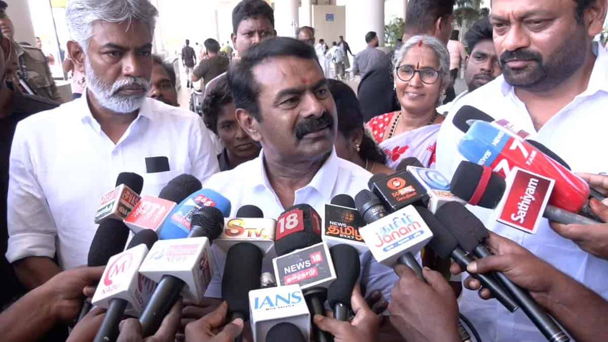 திருச்சி விமான நிலையத்தில் நாம் தமிழர் கட்சி தலைமை ஒருங்கிணைப்பாளர் சீமான் செய்தியாளர்களை சந்தித்து பேசினார் அப்போது அவர் கூறுகையில்..,