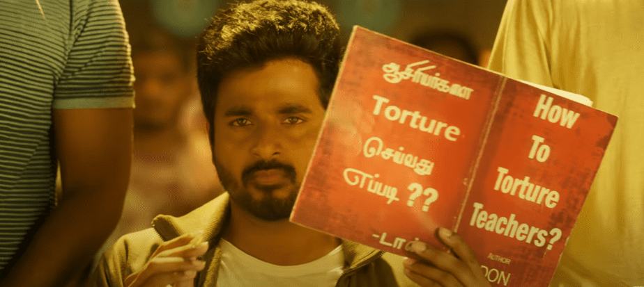 மேலும் ஒரு காட்சியில் ‘ஆசிரியர்களை டார்ச்சர் செய்வது எப்படி’ என்கிற புத்தகத்தை சிவகார்த்திகேயன் கையில் வைத்து படித்துக்கொண்டிருப்பார்.