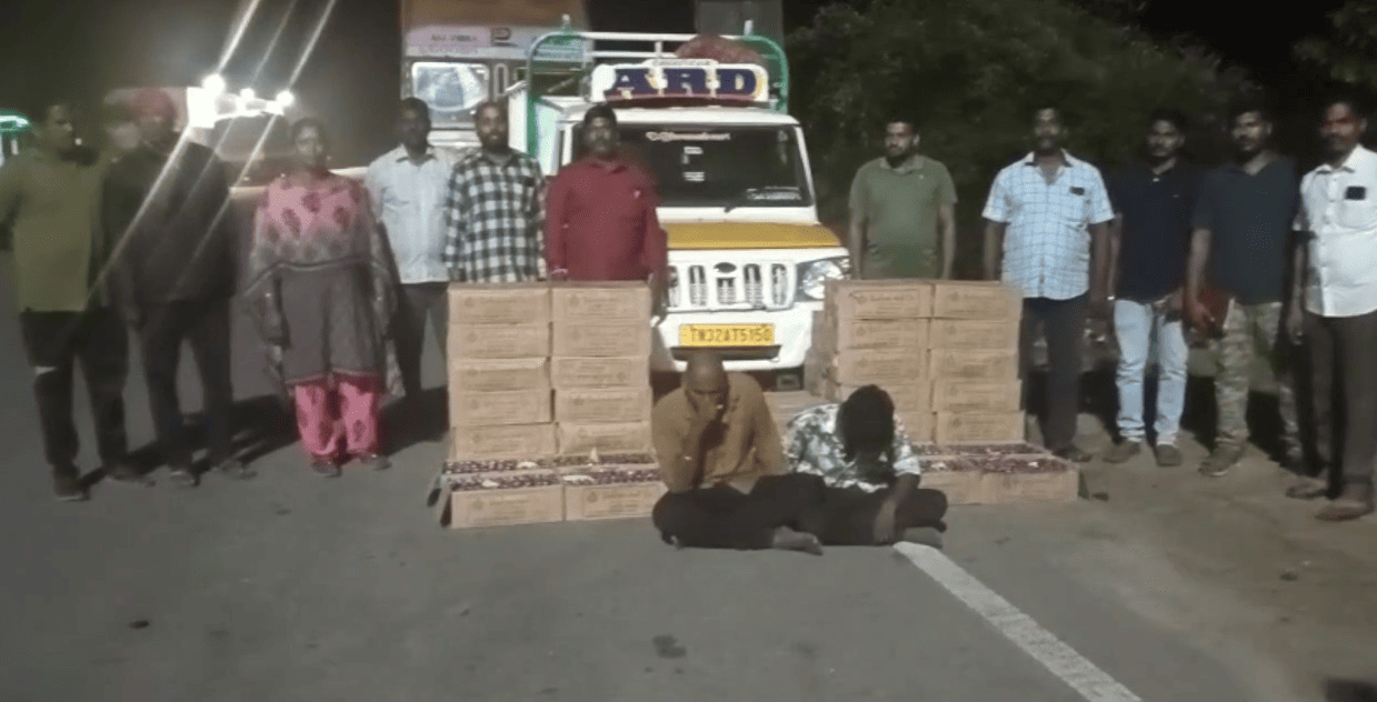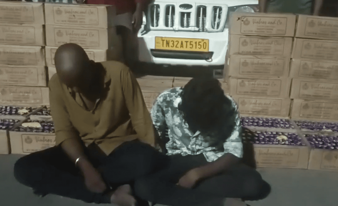 நூதன முறையில் மதுபானம் கடத்தல்.. வாகனத்தை சோதனையிட்ட போலீசார் ஷாக் : 3 ஆயிரம் மதுபாட்டில்களுடன் 2 பேர் கைது!!
