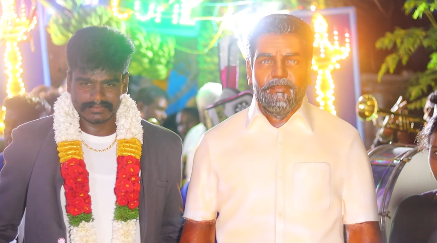 தனக்காக சிறு வயது முதல் உழைத்து வந்த தனது தந்தை தனது திருமணத்தில் கலந்து கொள்ள வேண்டும் என்று காவலர் அன்பரசன் எண்ணினார். இதற்காக அவரது தந்தையை மெழுகு சிலையாக தத்ரூபமாக வடிவமைத்துள்ளார்.