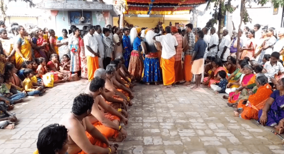 அதைத் தொடர்ந்து இன்று சாமிகளுக்கு அபிஷேக ஆராதனை மற்றும் சிறப்பு பூஜைகள் நடைபெற்றன. விரதம் இருந்த ஆண்கள் மற்றும் பெண்கள் உள்பட 20-க்கும் மேற்பட்ட பக்தர்கள் கோவில் முன்பாக அமர்ந்தனர்.