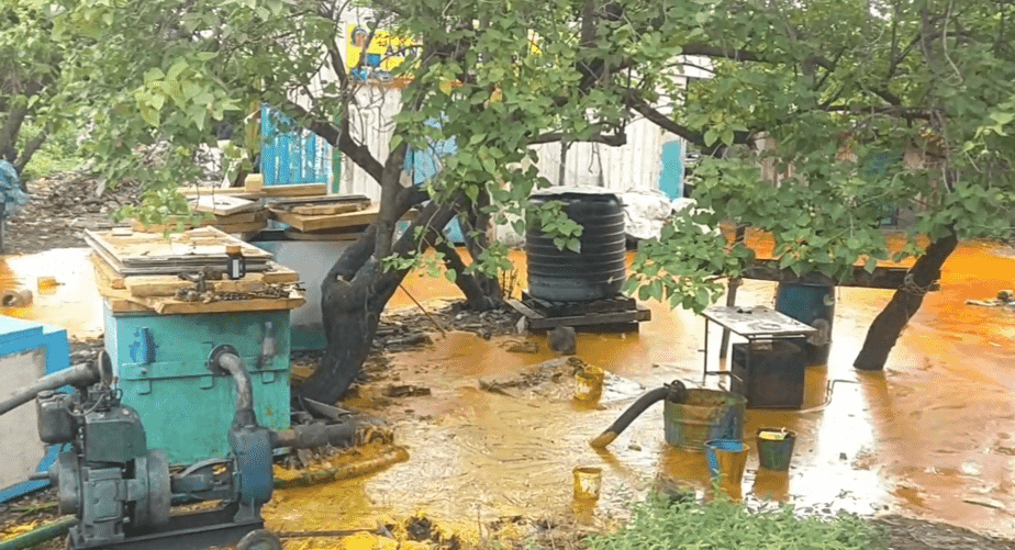 கப்பல் கட்டும் தளத்தில் சமையல் எண்ணெய் குளம் போல் தேங்கி இருக்கக்கூடிய காட்சி காசிமேடு பகுதியில் பரபரப்பு ஏற்படுத்தி உள்ளது