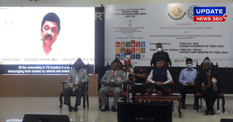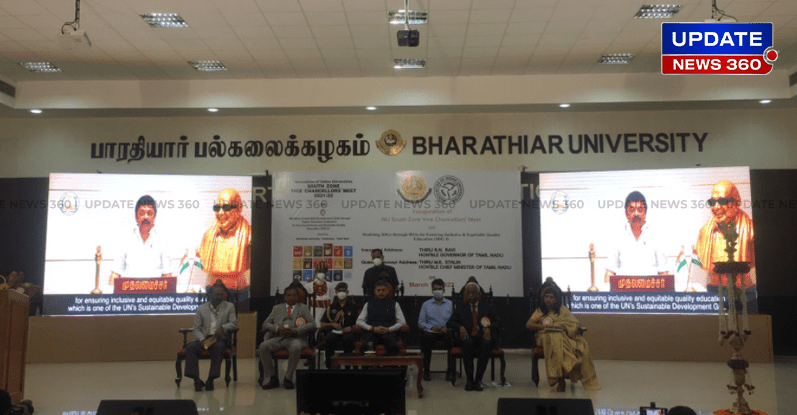 கோவை பாரதியார் பல்கலைக்கழகத்தில் தென்னக துணைவேந்தர்கள் மாநாடு நடைபெற்று வருகிறது. இதில் தமிழக ஆளுநர் என்.ஆர்.ரவி கலந்துகொண்டுள்ளார். மேலும் தமிழக முதலமைச்சர் மு.க.ஸ்டாலின் காணொலி காட்சி வாயிலாக இந்த மாநாட்டில் கலந்து கொண்டார்.