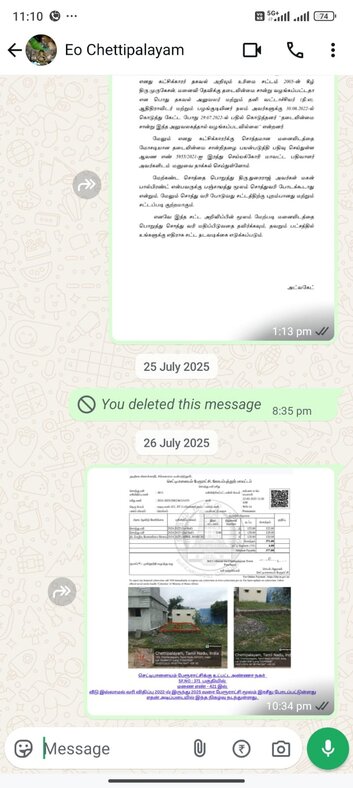 இந்த முறைகேட்டின் ஆதாரங்களை திரட்டி அந்த பகுதியை சேர்ந்த இளைஞர் ஐயப்பன் என்பவர், தான் சேகரித்த ஆதாரங்களை செட்டிபாளையம் செயல் அலுவலருக்கு வாட்ஸாப் மூலம் அனுப்பி வைத்து நியாயம் கேட்டதாக தெரிகிறது.