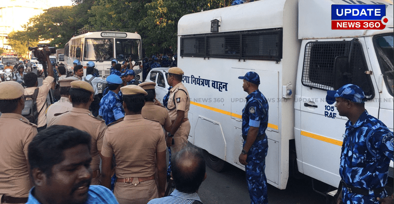 கோவையில் பதற்றம்.. பெட்ரோல் குண்டு வீச்சு சம்பவத்தின் எதிரொலி : வஜ்ரா வாகனத்துடன் அதிவிரைவுப்படை குவிந்ததால் பரபரப்பு!!