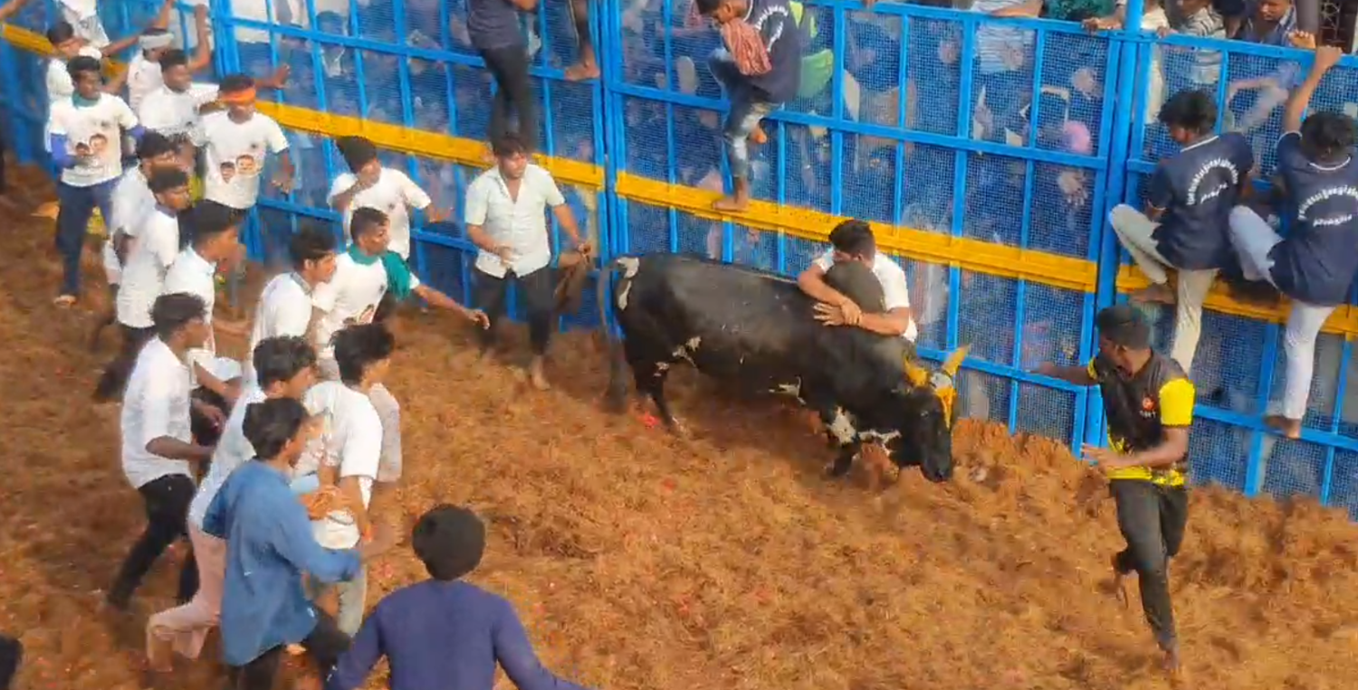 2024ம் ஆண்டுக்கான முதல் ஜல்லிக்கட்டு… தச்சன்குறிச்சியில் சீறிப்பாயும் காளைகள்… ஆக்ரோஷமாக அடக்கும் காளையர்கள்..!!