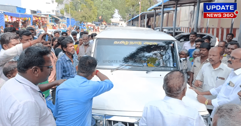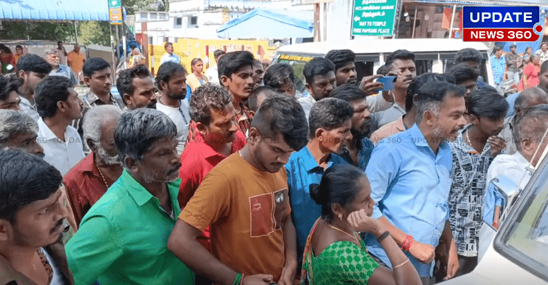 ஆக்கிரமிப்பு கடைகளை அகற்றும் போது பாதுகாவலர்கள் கடைக்காரர்களை தாக்கி, பொருட்களை பறித்து சென்றுள்ளானர். இதனால் ஆவேசம் அடைந்த கடைக்காரர்கள் 50க்கும் மேற்பட்டோர் கோயில் இணைஆணையர் லட்சுமியின் வாகனத்தை மறித்து முற்றுகையிட்டு வாக்குவதம் செய்தனர்.
