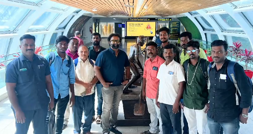 இந்த நிலையில் இயற்கை விவசாயத்தை மக்கள் மத்தியிலே கொண்டு செல்லும் சத்யம் பயோ நிறுவனத்தின் இயக்குனர் செந்தில்குமார் இந்த மே தினத்தின் தொழிலாளர்களை மகிழ்ச்சி வைக்கும் வகையில் அவர் நிறுவனத்தில் பணிபுரியும் 18 தொழிலாளர்களை தனது சொந்த செலவில் மதுரையில் இருந்து விமான மூலம் சென்னைக்கு சுற்றுலாவுக்காக அழைத்து சென்றுள்ளார்.