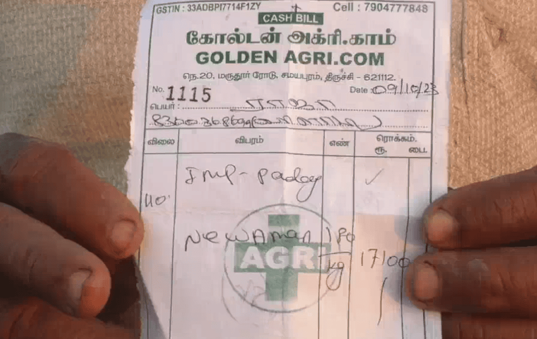 இந்நிலையில் இந்த வருடம் விவசாயம் செய்வதற்கு அதே பகுதியில் உள்ள எட்டு ஏக்கர் விளைநிலத்தினை குத்தகைக்கு வாங்கி உள்ளார். அதில் நெல் பயிர் நடவு செய்ய சமயபுரம் பகுதியில் உள்ள கோல்டன் ஆக்ரோ சர்வீஸ் கடைக்கு சென்று தன்வீர் என்ற நெல் ரகத்தினை கேட்டுள்ளார்.
