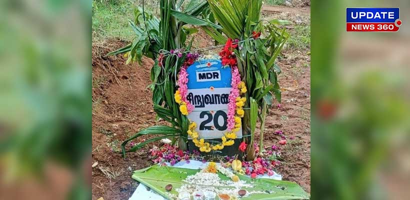இந்நிலையில் அப்பகுதியில் உள்ள கிராம மக்கள் சினிமா பட பாணியில் அந்த மைல் கல்லை தண்ணீர் ஊற்றி, மாலை அணிவித்து, அலங்காரம் செய்து படையலிட்டு ஆயுத பூஜை கொண்டாடினர்.