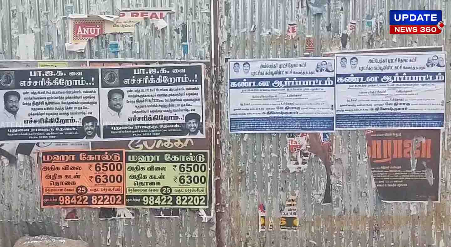 ஒட்ட வந்த பிடாரி ஊர் பிடாரியை விரட்டிச்சாம் மண்ணின் மைந்தனுக்கான குரல் கொடுத்த முக்குலத்தோர் சமுதாயத்தைச் சேர்ந்த திருச்சி சூர்யாவை வேடந்தாங்கல் பறவைகளுக்கு ஆதரவாக கட்சியிலிருந்து நீக்கிய பாஜகவை கண்டித்து புதுக்கோட்டை நகர் முழுவதும் எச்சரிக்கை நோட்டீஸ்கள் ஒட்டப்பட்டுள்ளன புதுக்கோட்டை நேதாஜி மக்கள் நல சங்கம் சார்பில் புதுவை ராஜகுருதேவன் என்பவரது பெயரில் இந்த எச்சரிக்கை நோட்டீஸ் ஒட்டப்பட்டுள்ளன.