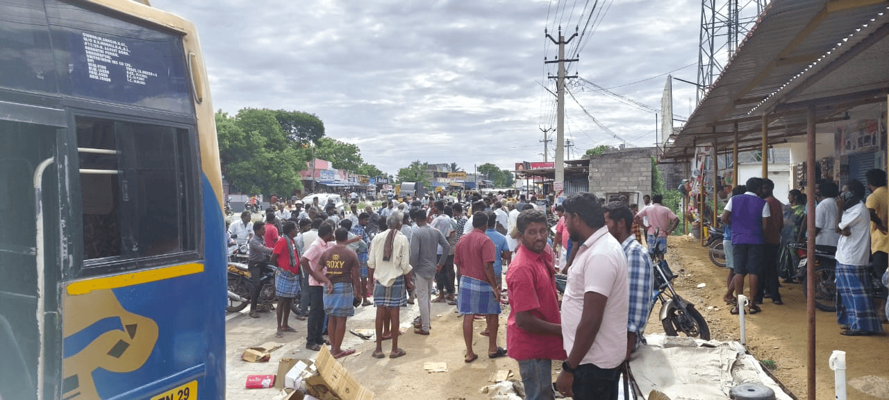அப்பொழுது பாப்பிரெட்டிபட்டியில் இருந்து தர்மபுரி நோக்கி வந்துக்கொண்டு இருந்த தனியார் பேருந்து கட்டுப்பாட்டை இழந்து இருசக்கர வாகனத்தின் மீது மோதலை தவிர்க்க தனியார் பேருந்து ஓட்டுனர் இடது புறம் பேருந்தை திருப்பியுள்ளார்.