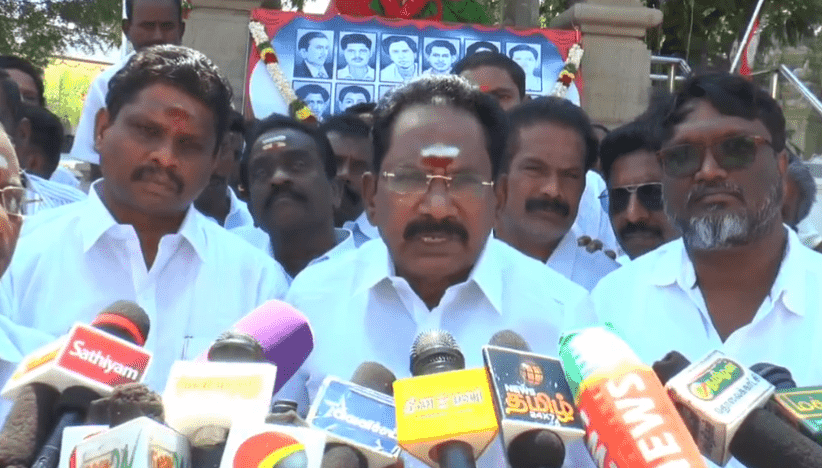நாளை வரும் நாடாளுமன்ற தேர்தலுக்காக இரண்டு சீட்டு மூன்று சீட்டு மற்றும் கோடி ரூபாய்க்காக தங்கள் கொள்கைகளை அடமானம் வைத்திருக்கக்கூடிய கம்யூனிஸ்ட் கட்சிகள். மொழிப்போர் தியாகிகளுக்கான வீரவணக்க நாள் கூட்டத்தில் ஆவது இனிமேல் தமிழக மக்களுக்கு நல்லது செய்ய குரல் கொடுக்க வேண்டும் என கேட்டுக்கொள்கிறேன் என்று பேசினார்.