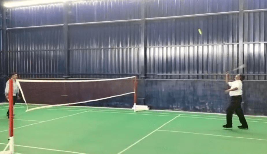 அவர் வீட்டின் அருகில் உள்ள பேட்மிட்டன் மைதானத்தை கண்ட அவர் உற்சாகத்தில் திடீரென பேட்மிட்டன் விளையாட களத்தில் குதித்து உற்சாகத் துள்ளலோடு ஆட்டத்தில் ஈடுபட்டார்.