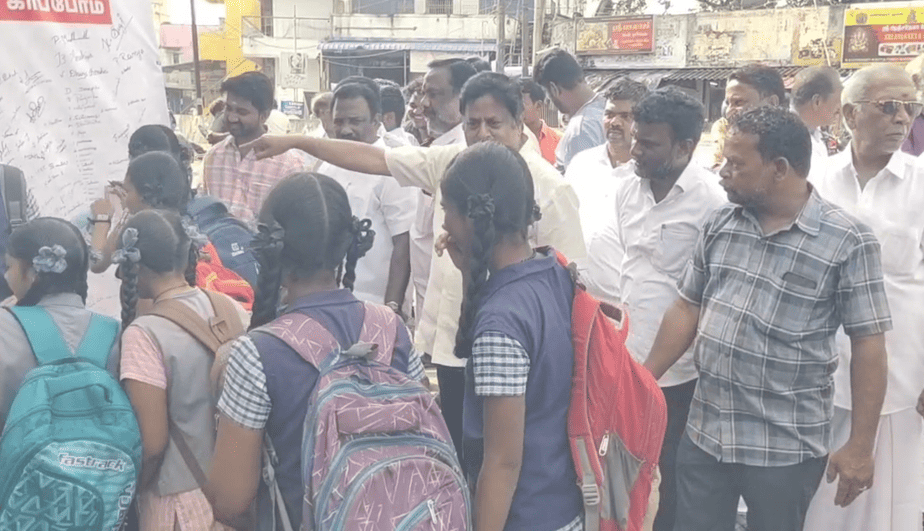 பெரும்பாலான பள்ளியில் படிக்கும் மாணவ, மாணவிகளிடம் கையெழுத்து இயக்கம் நடத்தினர். இதன் மூலம் 50 லட்சம் கடிதங்களை இந்திய ஜனாதிபதிக்கு அனுப்புவதற்காக இந்த கையெழுத்து இயக்கம் திமுக கழகம் சார்பாக அறிவிக்கப்பட்டது.