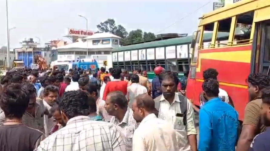 மேலும் தமிழக அரசு பேருந்து ஓட்டுநர் இடிபாடுகளுக்குள் சிக்கி வெளியேற முடியாமல் பரிதவித்த நிலையில் ஜேசிபி இயந்திரம் மூலம் பொதுமக்கள் அவரை மீட்டு மருத்துவமனைக்கு அனுப்பி வைத்தனர்.