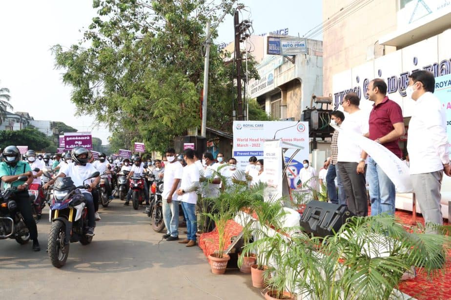 இந்நிலையில் தலைக்காயம் குறித்து விழிப்புணர்வு ஏற்படுத்தும் வகையில்,உலக தலைக்காயம் தினம் அனுசரிக்கப்படுகிறது. இந்நிலையில் தலைக்காயம் குறித்து விழிப்புணர்வை ஏற்படுத்தும் வகையில்,கோவை ராயல் கேர் மருத்துவமனை சார்பாக ஹெல்மெட் விழிப்புணர்வு பேரணி நடைபெற்றது.