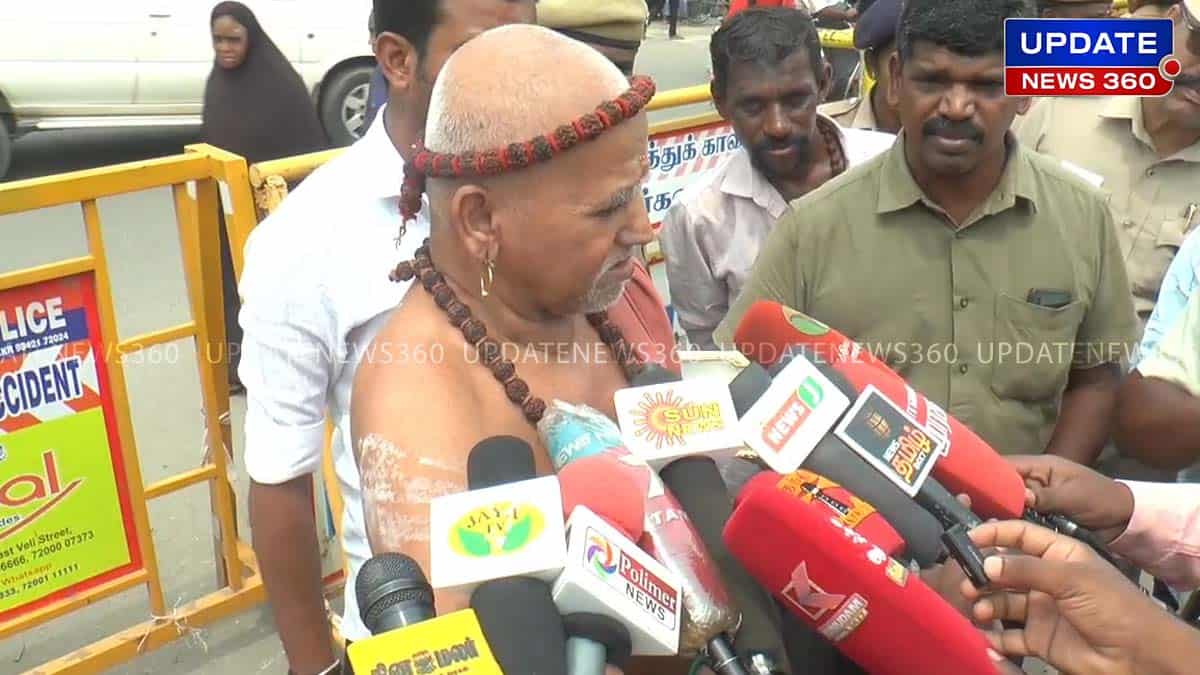 தொடர்ந்து நடிகர் விஜய் குறித்தான கேள்வியை செய்தியாளர் எழுப்பிய உடனே இடத்தை விட்டு நகர்ந்து சென்றார் மதுரை ஆதினம்.