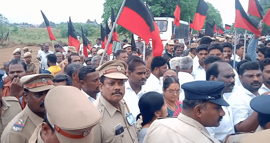 ஆளுநர் ரவி வருகையின் போது திமுகவினர் எதிர்ப்பு கோஷமிடுவதற்காக வந்தபோது, போலீசாருக்கும், திமுகவினருக்கும் வாக்குவாதம் ஏற்பட்டுள்ளது.