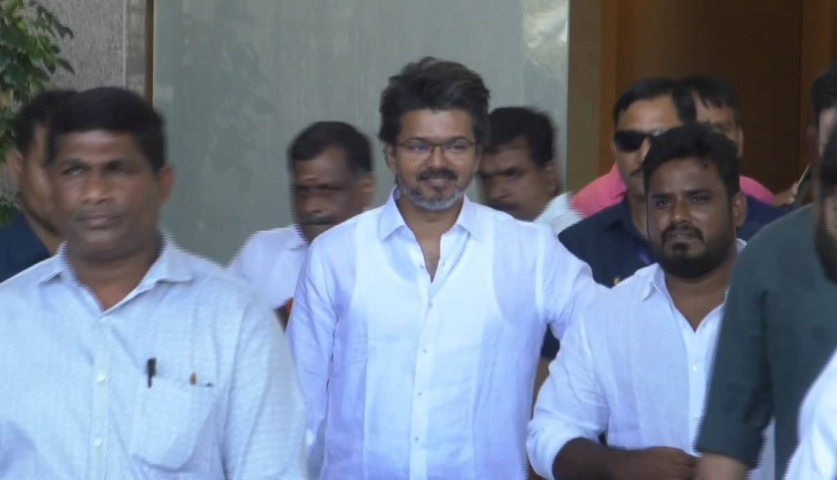 திருச்சி விமான நிலையத்தில் நாமக்கல் மற்றும் கரூர் மாவட்டத்தில் பிரச்சாரம் மேற்கொள்ள திருச்சி வந்தார் விஜய்.