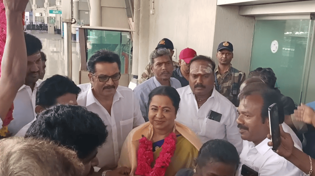 விருதுநகர் நாடாளுமன்ற தொகுதிக்கு பாஜக கூட்டணி வேட்பாளராக அறிவிக்கப்பட்ட ராதிகா சரத்குமார் சென்னையில் இருந்து விமானம் மூலம் மதுரை வந்தடைந்தார்.