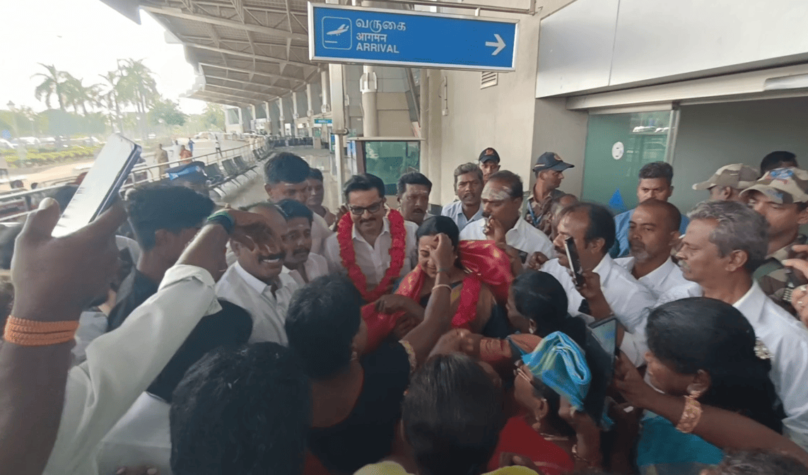 அப்போது மதுரை விமான நிலையத்தில் வருகை தந்த பாஜக மற்றும் சமத்துவ மக்கள் கட்சி தொண்டர்கள் சரத்குமார் மற்றும் ராதிகா இருவருக்கும் மாலை