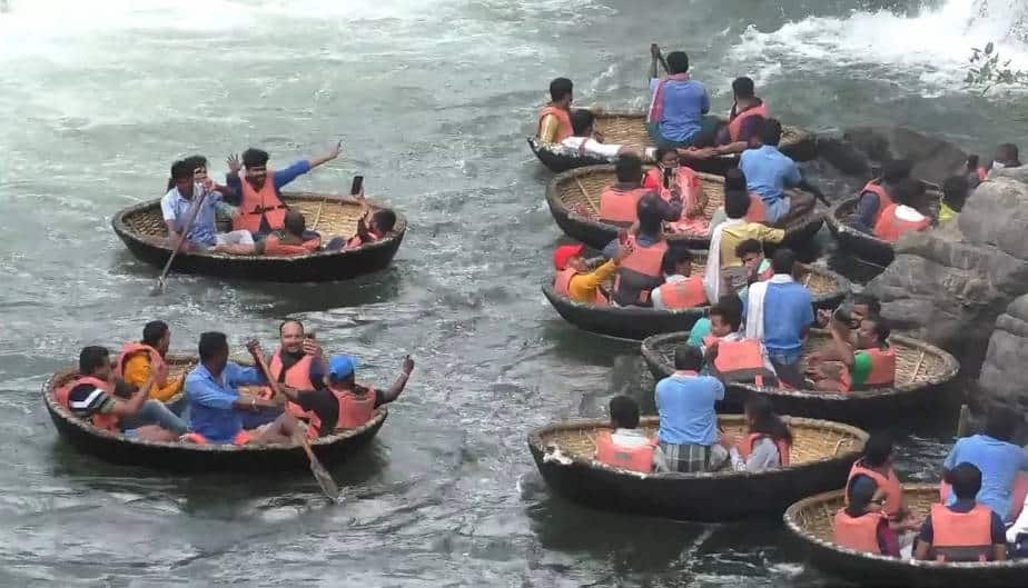 தருமபுரி : ஒகேனக்கல்லில் விடுமுறை தினத்தை கொண்டாட சுற்றுலா பயணிகள் குவிந்ததால், பரிசல் ஓட்டிகள் உள்ளிட்ட சிறு சிறு தொழிலாளர்கள், வியாபாரிகள் மகிழ்ச்சி அடைந்துள்ளனர்.