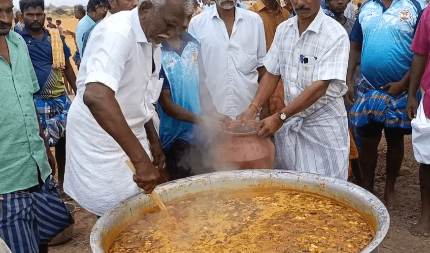 ஆண்கள் மட்டும் பங்கேற்கும் விநோத அசைவ திருவிழா : 60 கிடாய்களை வெட்டி கறி விருந்து.. இலையை எடுக்க மட்டும் பெண்கள்!!
