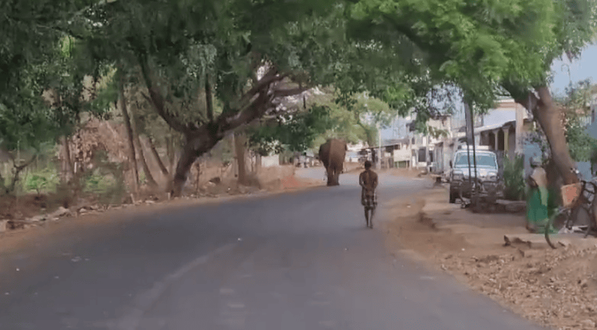 யானை இருப்பது தெரியாமல் அந்த கார் வந்து கொண்டிருந்த நிலையில் அங்க இருந்து பொதுமக்கள் எச்சரிக்கை செய்து காரை நிறுத்துமாறு கேட்டுள்ளனர்.