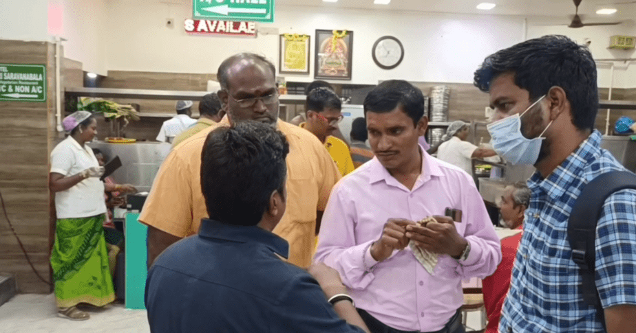 காஞ்சிபுரம் நகரில் மிக முக்கியமான பகுதியில் உள்ள இந்த பிரபலமான உணவகத்திற்கு அதிகமான வாடிக்கையாளர்கள் செல்வது வழக்கம். இந்நிலையில் காஞ்சிபுரம் அடுத்த பரந்தூர் பகுதியை சேர்ந்த வழக்கறிஞர் சுரேஷ் என்பவர் நேற்று மாலை இந்த உணவகத்தில் உணவருந்தியுள்ளார்.