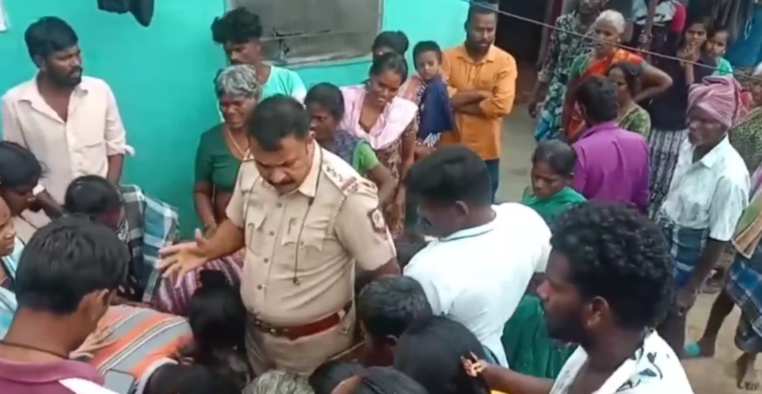 போதையில் இருந்த அவரை போலீசார் தூக்கி வாகனத்தில் ஏற்ற முற்பட்ட போது, தியாகு காலில் காயம் ஏற்பட்டதாக கிராம மக்கள் அவரை கைது செய்ய எதிர்ப்பு தெரிவித்து போலீசாரிடம் கடும் வாக்குவாதத்தில் ஈடுபட்டதால் அப்பகுதியில் சுமார் 3 மணி நேரத்திற்கு மேலாக பரபரப்பான சூழ்நிலை நிலவியது. அசம்பாவிதம் ஏற்படாமல் இருக்க அரூர் டிஎஸ்பி ஜெகன்நாதன் தலைமையில் சுமார் 30க்கும் மேற்பட்ட போலீசார் குவிக்கப்பட்டுள்ளனர்.