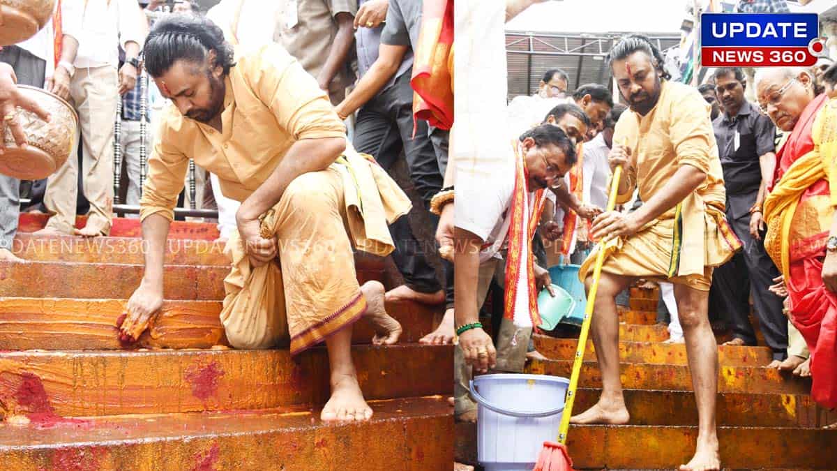 புனிதமான திருப்பதி லட்டில் கலப்படம் செய்யப்பட்டதற்கு பரிகார தீட்சையை மேற்கொண்டு வரும் துணை முதல்வர் பவன் கல்யாண் விஜயவாடாவில் உள்ள துர்கா மல்லேஸ்வர சாமி கோயிலில் நடந்த சுத்தம் செய்யும் நிகழ்ச்சியில் பங்கேற்றார். பின்னர் கோயிலில் அம்மனை வழிபாடு செய்தார்.